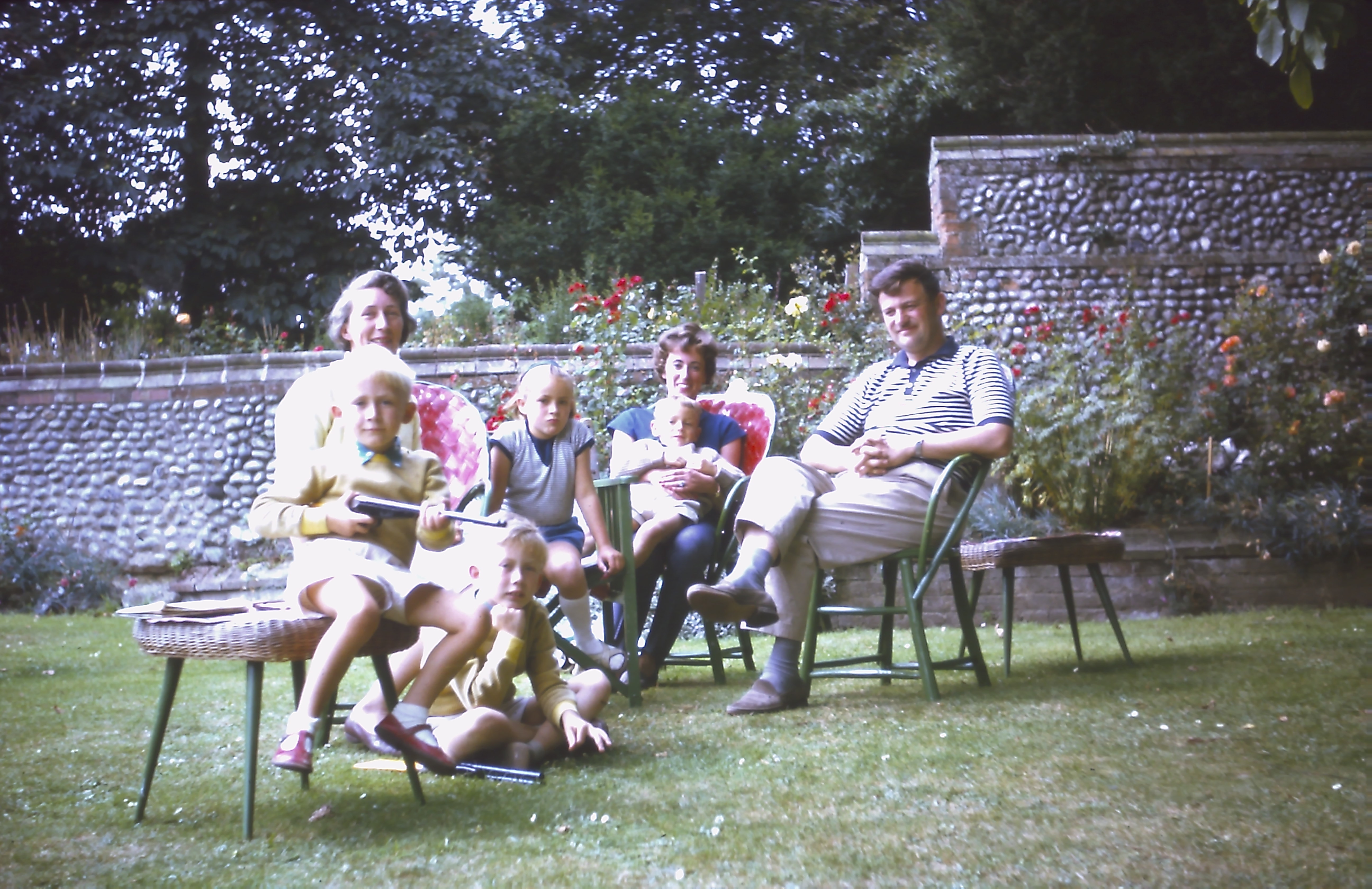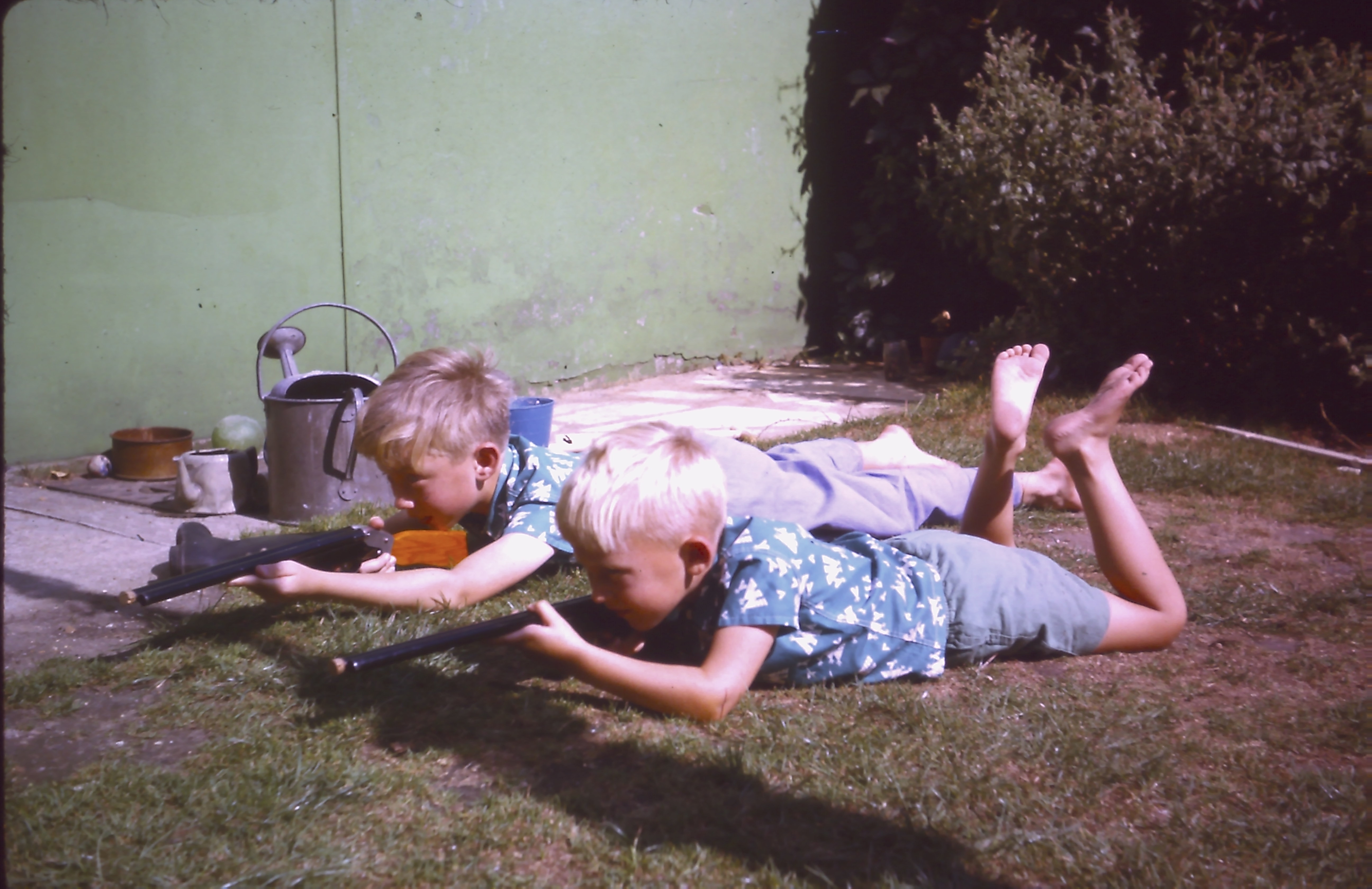 19 D + A in garden with rifles bought on holiday