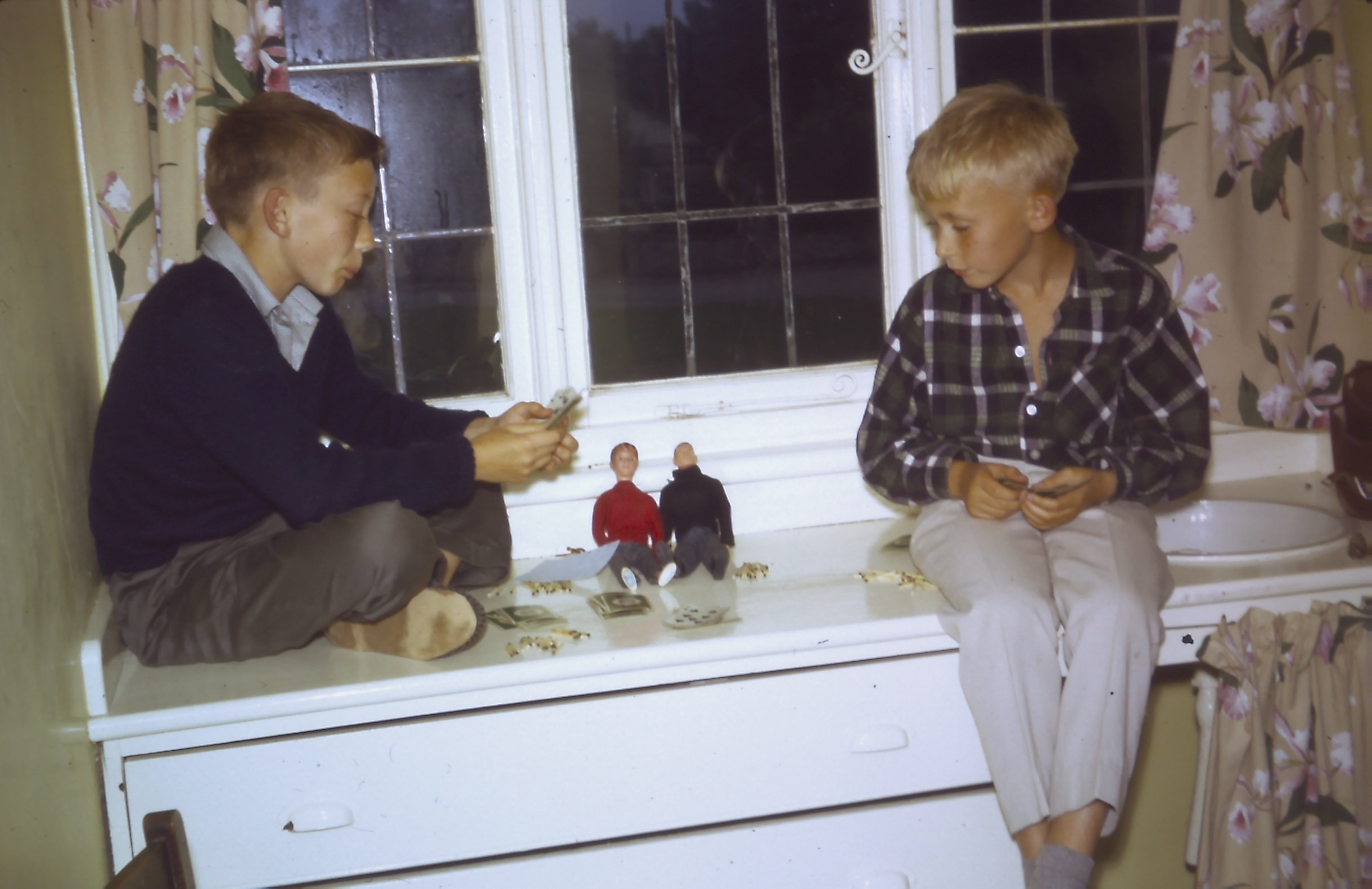 14 Dennis + Andrew playing solo with Action Man + Paul Tabard House bedroom Summer 1968