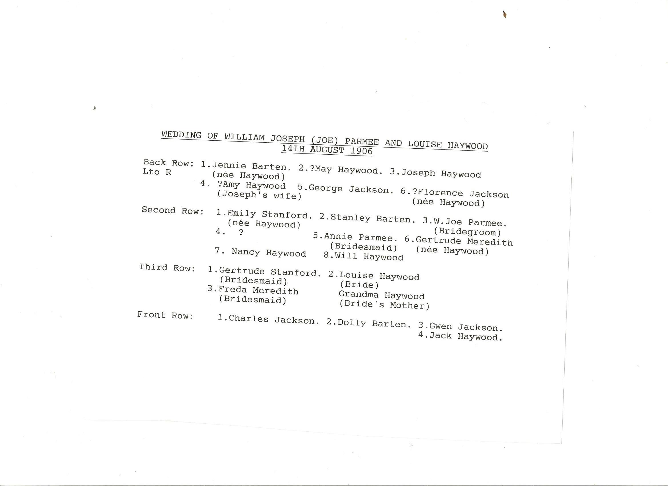 ![]() wedding of Joseph Parmee and Louise Haywood 14-Aug-1906 copy obtained from johnwilkinson1958 Ancestry family tree Joseph_Parmee_Louise_Haywood_14-Aug-1906.jpg 2338x1700 0.4Mb |