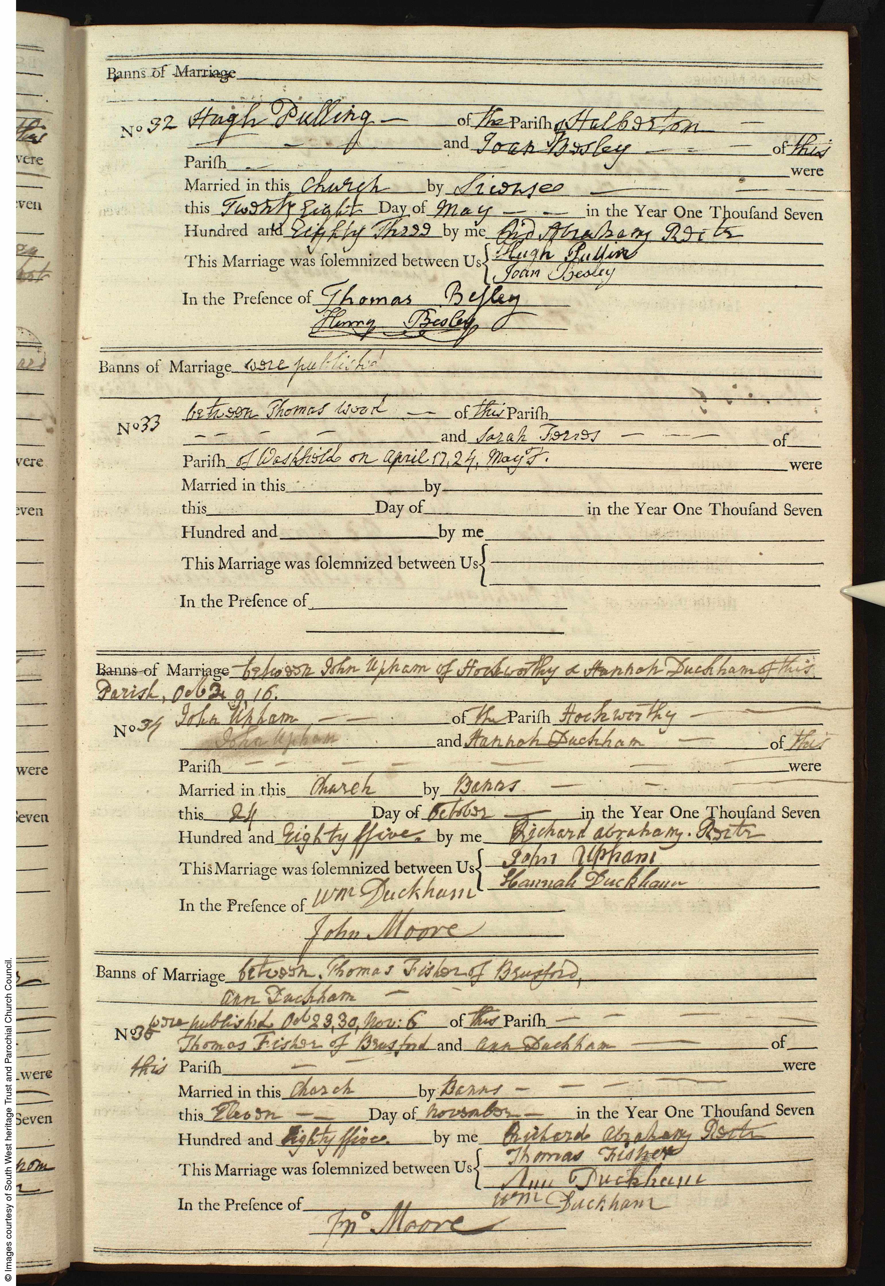 ![]() marriage entry: Henry Turner Pook and Elizabeth Pullin 10 April 1808 St Andrew, Halberton, Devon mar1808_henry_turner_pook.jpg 2013x3042 0.6Mb |