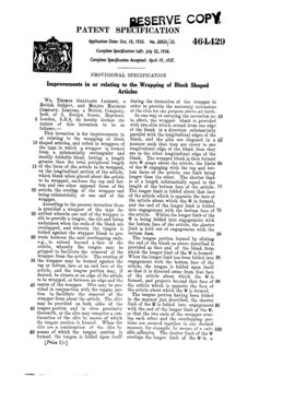 ![]() Patent US2100141: 23 November 1937: Wrapping of Block Shaped Articles US459469_FASTENINGS_TO_BE_USED_AS_SLEEVE-LINKS.pdf 0.2Mb |