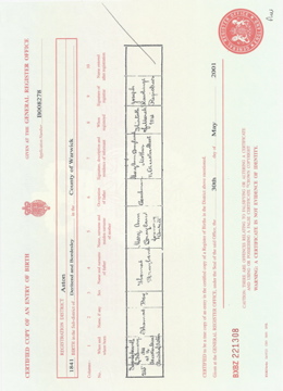 ![]() birth certificate: Charles Jackson 28 May 1841 Jun 1841 Aston volume XVI page 180 b1841_charles_jackson.jpg 2480x3438 4.7Mb |