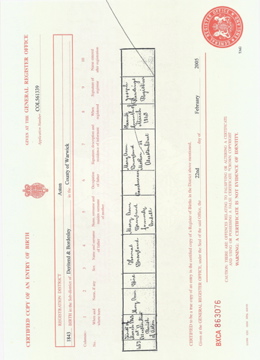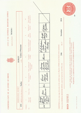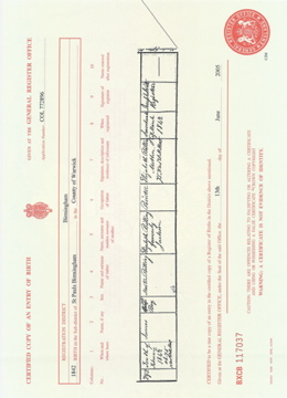 ![]() birth certificate: Mary Ann Grayland 1 March 1843 Mar 1843 Aston volume XVI page 192 b1843_mary_ann_grayland.jpg 2480x3431 2.3Mb |