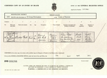 ![]() death certificate: Charlotte Youle (formerly Jackson latterly Billing) 28 February 1850 Mar 1850 Birmingham volume 16 page 196 age 73 d1850_charlotte_youle.jpg 3509x2550 1.9Mb |