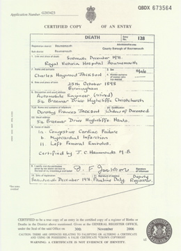 ![]() marriage certificate: Charles Haywood Jackson 19 January 1929 Mar 1929 Coventry volume 6d page 1072 spouse Eaton m1929_charles_haywood_jackson.jpg 3440x2480 2.7Mb |