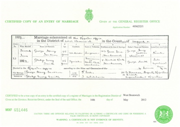![]() marriage certificate: George Henry Jackson 2 June 1927 Sep 1927 W.Bromwich volume 6b page 1986 spouse Smith copy obtained from johnwilkinson1958 Ancestry family tree m1927_george_henry_jackson.jpg 1024x724 0.3Mb |