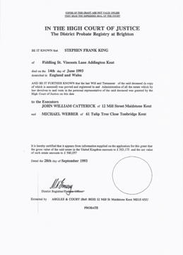 ![]() will: Stephen Frank King probate Brighton 28 September 1993 page one will1993sep28_stephen_frank_king_1.jpg 2480x3454 0.7Mb |